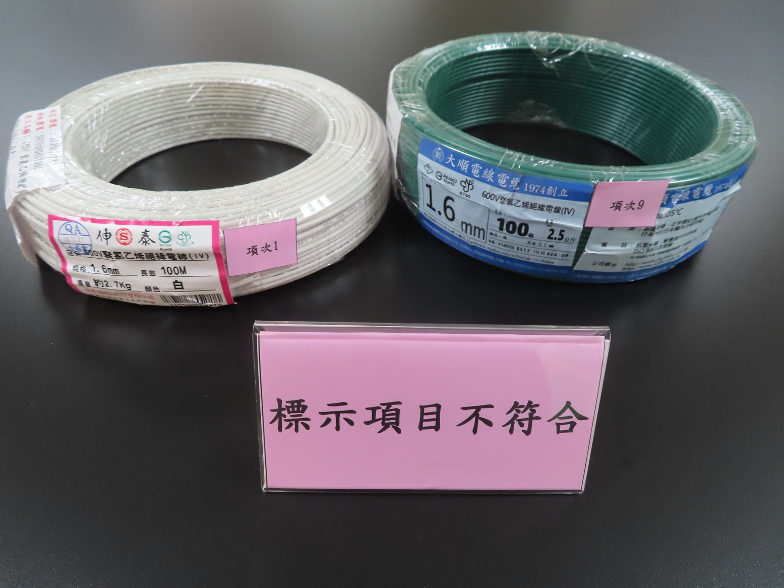 「600V聚氯乙烯絕緣電線」是住家常用電源線路,以提供給電器產品使用電源的商品。為確保市售「600V聚氯乙烯絕緣電線」安全性,標準局114年5月於五金百貨、材料行等販售通路,隨機購買10件不同廠牌型號之「600V聚氯乙烯絕緣電線」進行檢測,結果「品質項目」及「重要零組件比對」全數符合規定,「標示查核」計2件不符合規定。